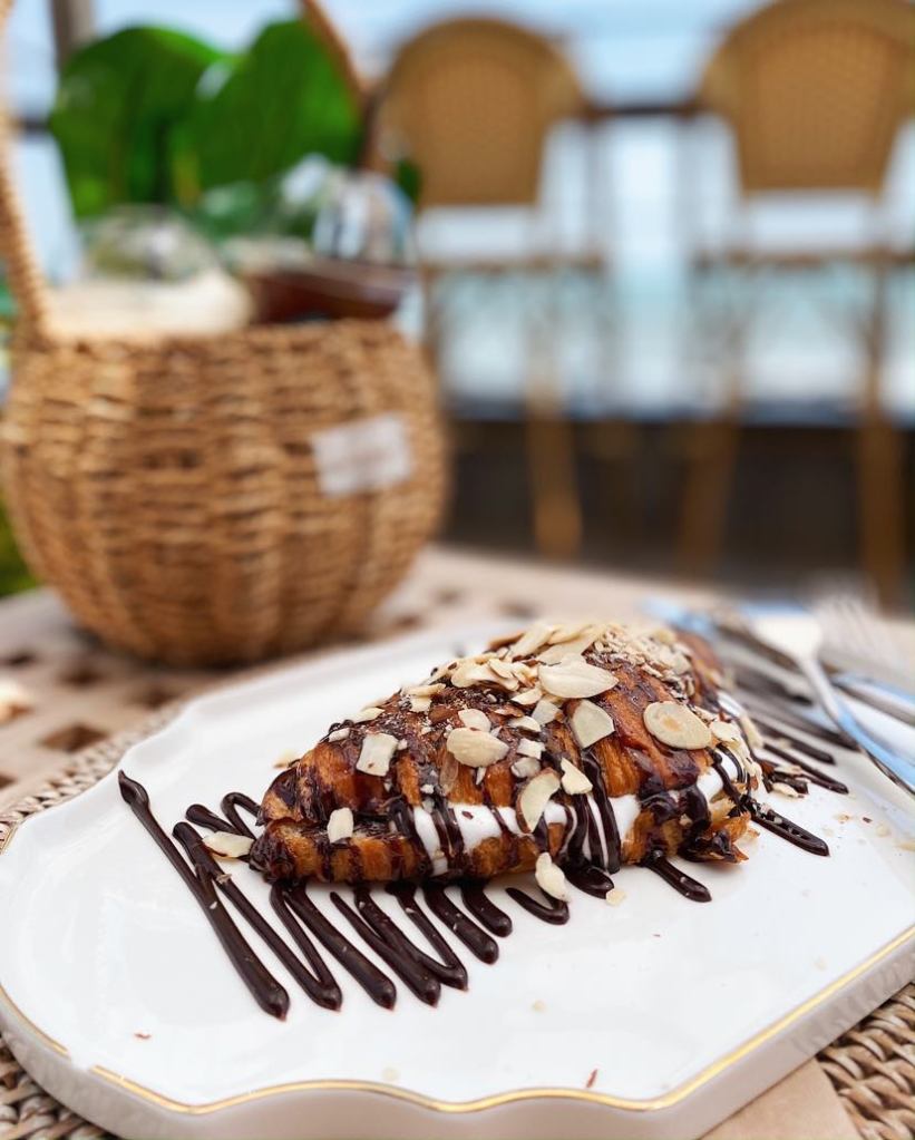 We ordered our drinks — iced vanilla latte and an iced americano — as well as a chocolate almond croissant with a cream filling to hold us over until lunch. Admittedly, the drinks and food are nothing you can’t find at any other cafe in town, but the view Cafe Rooftop offers is what really distinguishes it from the rest.
